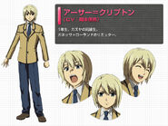 Arthur makes his first appearance just after Kazuya enters his dorm room and reveals himself to be his 'next door neighbor'. Arthur greets Kazuya with a handshake. In Kazuya's room, Arthur explains to him the Pandora-Limiter partnership and the Ereinbar Set. He warns Kazuya of Satellizer L. Bridget and reveals that his Partner Pandora is Ganessa Roland, much to Kazuya's surprise.