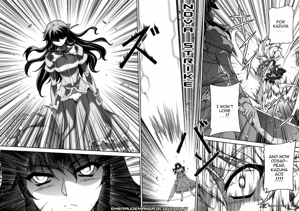 After embracing for a time, Satellizer and Kazuya begin to feel awkward after he brings up his sister. Satellizer attempts to offer herself as Kazuha's replacement, but only succeeds in embarrassing both of them furthering. Soldering on, Satellizer swears that she wishes to become Kazuya's, and after some hesitation, the two kiss passionately. They are suddenly interrupted by Rana, much to their shock. They begin to give excuses, but are brushed aside when Rana informs them that an emergency meeting has been called.