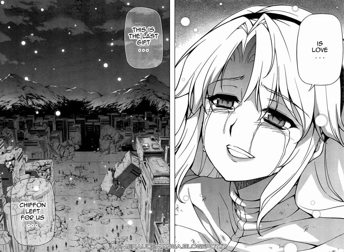 Cassie's body talks, and Satellizer and Kazuya realize that Cassie is still partially conscious. Satellizer is unable to defeat her, and is almost killed when Kazuya uses his Freezing to stop Cassie from cutting off her head. However, Kazuya is thrown back by the force of Cassie's own Freezing. As Cassie continues to attack Satellizer, Satella swears that if anything happens to Kazuya, she will personally terminate her, even if she is dead. When Cassie is about to deliver the finishing blow, the real Cassie stops herself and starts crying tears of blood. She begs Satellizer to stop her before she hurts any more people, but is quickly taken over by the Nova Stigmata. Firing a beam at Satellizer, Ganessa stands in between them, protecting Satellizer and taking the full blow, getting half of her body blown off. Arthur rushes to her side, and she tells him that protecting the weak is a Pandora's duty. Meanwhile, the Novalized Milena reaches the core of the Ravensbourne Nucleotide, but is met by Chiffon and Ticy, who defeat her.