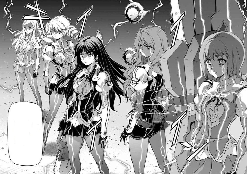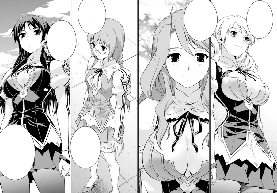 The girls receive word that the Faylan Generators have broken down, and they are causing the intense stigmatic resonating with the Pandora. However, they are constantly keeping the Injection Stigmata within the Valkyries active, allowing them to use the full extent of their abilities. Gengo gives word for the Valkyries to eliminate the four dummies, and the girls proceed to throttle one of them. However, the dummy still stands despite being nearly destroyed, and real Nova enter the training ground. Ouka wonders what Gengo's plans are as she and the Valkyries activate their Plasma Textures.